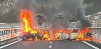 Jaf ca în film: Hoții au blocat autostrada cu maşini arse...