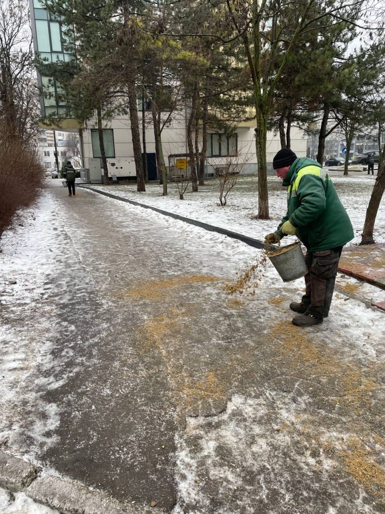 În baza evaluării situației din teren, muncitorii și utilajele au fost direcționați prioritar către zonele cu cel mai mare risc pentru siguranța cetățenilor. Se efectuează lucrări intensive în curțile blocurilor locative și pe căile de acces, atât manual, cât și cu utilaje specializate.