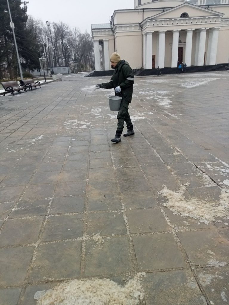 Material antiderapant este aplicat repetat pe arterele pietonale, în scuaruri și în apropierea stațiilor de transport public. O atenție specială este acordată scărilor, trecerilor de pietoni și intrărilor în instituțiile sociale.