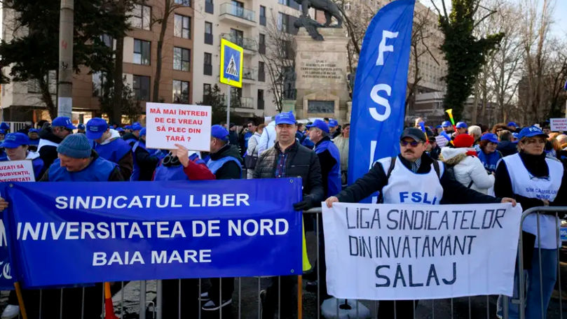 Sute de sindicaliști din sistemul de educație din România au ieșit în stradă pentru a-și exprima nemulțumirea față de măsurile guvernamentale care afectează salariile și condițiile de muncă. La protest s-au alăturat și studenți care contestă majorarea taxelor de școlarizare și reducerea burselor.