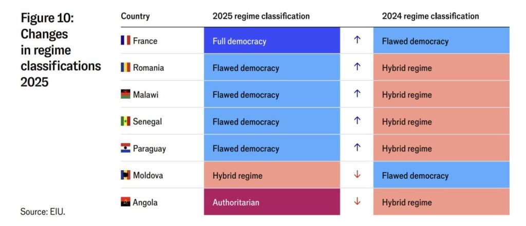 Deputatul MAN, Gaik Vartanean, a reacționat la rezultatele Democracy Index 2025 realizat de EIU (The Economist), afirmând că retrogradarea Republicii Moldova din categoria „democrație defectuoasă” în categoria „regim hibrid” reprezintă un semnal grav privind degradarea democrației în țară.